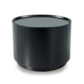 Round Mirrored Metal End Table with Glass Top and Crystal Accent Base, Silver