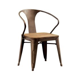 Textured Fabric Accent Chair with Padded Armrests, Brown and Beige