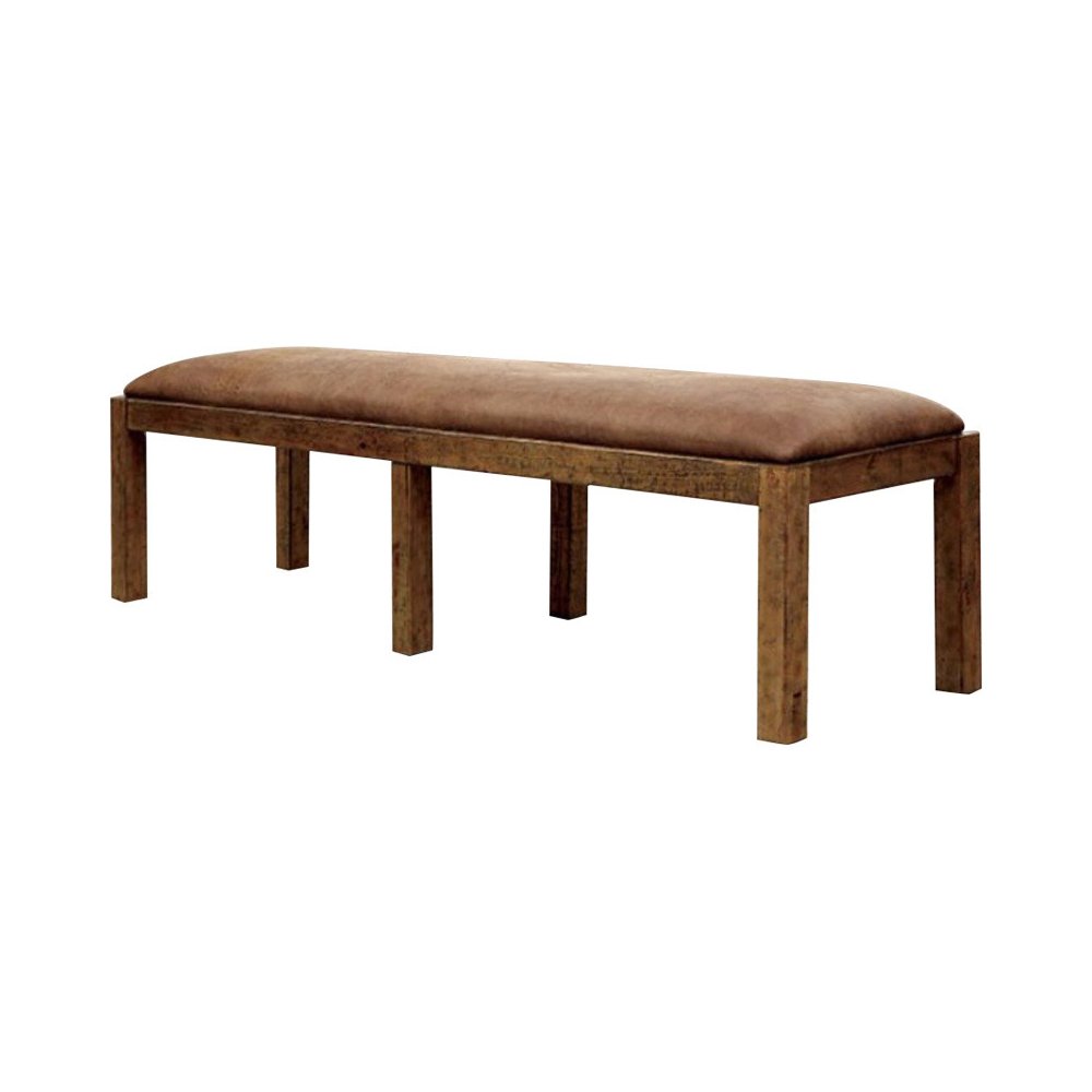 Home > Rectangular Bench with Leatherette Padded Seat and Block Legs, Rustic Brown