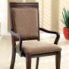 A sturdy and stunning accent to the traditional dining room, this set of two arm chairs is a luxurious way to bring additional seating to your dinner parties or nightly meals. The padded back design provides a plush bounce while fabric upholstered foam seats and thick, sturdy wood legs give the chair a distinctly sophisticated aura of class and old world charm.