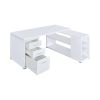 Contemporary L Shaped Office Desk with 3 Drawers and Shelves, White