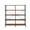 63 Inch Industrial 4 Tier Shelf Bookshelf, Particleboard, Metal Frame, Brown, Black