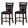 This set of 2 counter high chairs will add color and life to your dining room d?cor. Features Anacardium Wood structure in deep brown finish and faux leather seat cushion in black color. This chair has black square padded back with a slight curve, making it a handsome piece for your home dining space, making this set of chair a must inclusion in any decor. Create elegant and sleek contemporary style that is perfectly suited for any living room environment. Some assembly will be required. Height of Seat: 24". Chair 3dimension: 19" x 23" x 42" Material: Anacardium Wood