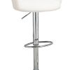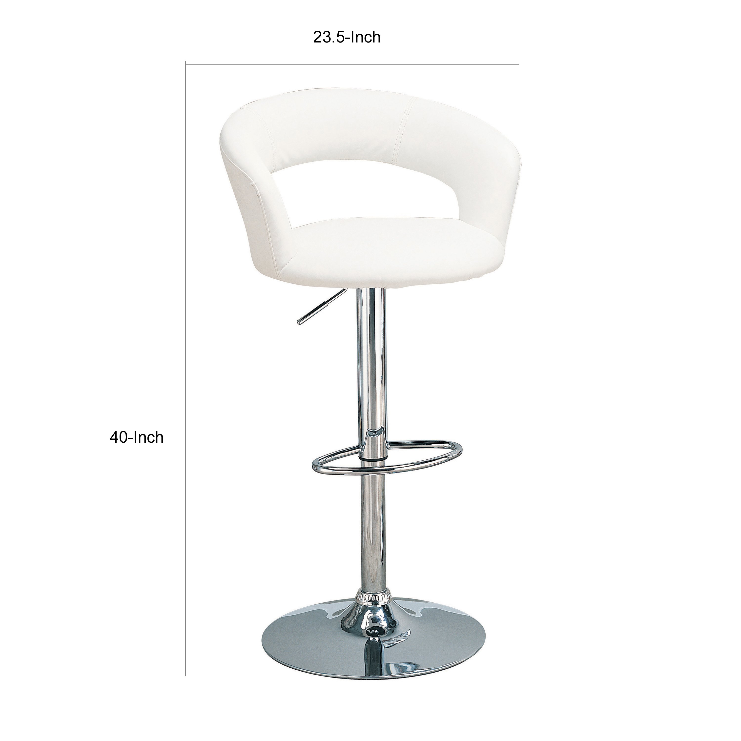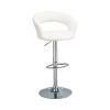 This cool Contemporary One-Piece faux leather bar Stool will be a stylish addition to your casual dining and entertainment area. The plush curved stool back and seat are covered in a rich faux leather in white to complement your taste. A shiny steel base with a high polished chrome finish supports the Stool, with an adjustable height mechanism and round footrest below for comfort. Transform your home into a fun hangout with this stylish bar stool.
