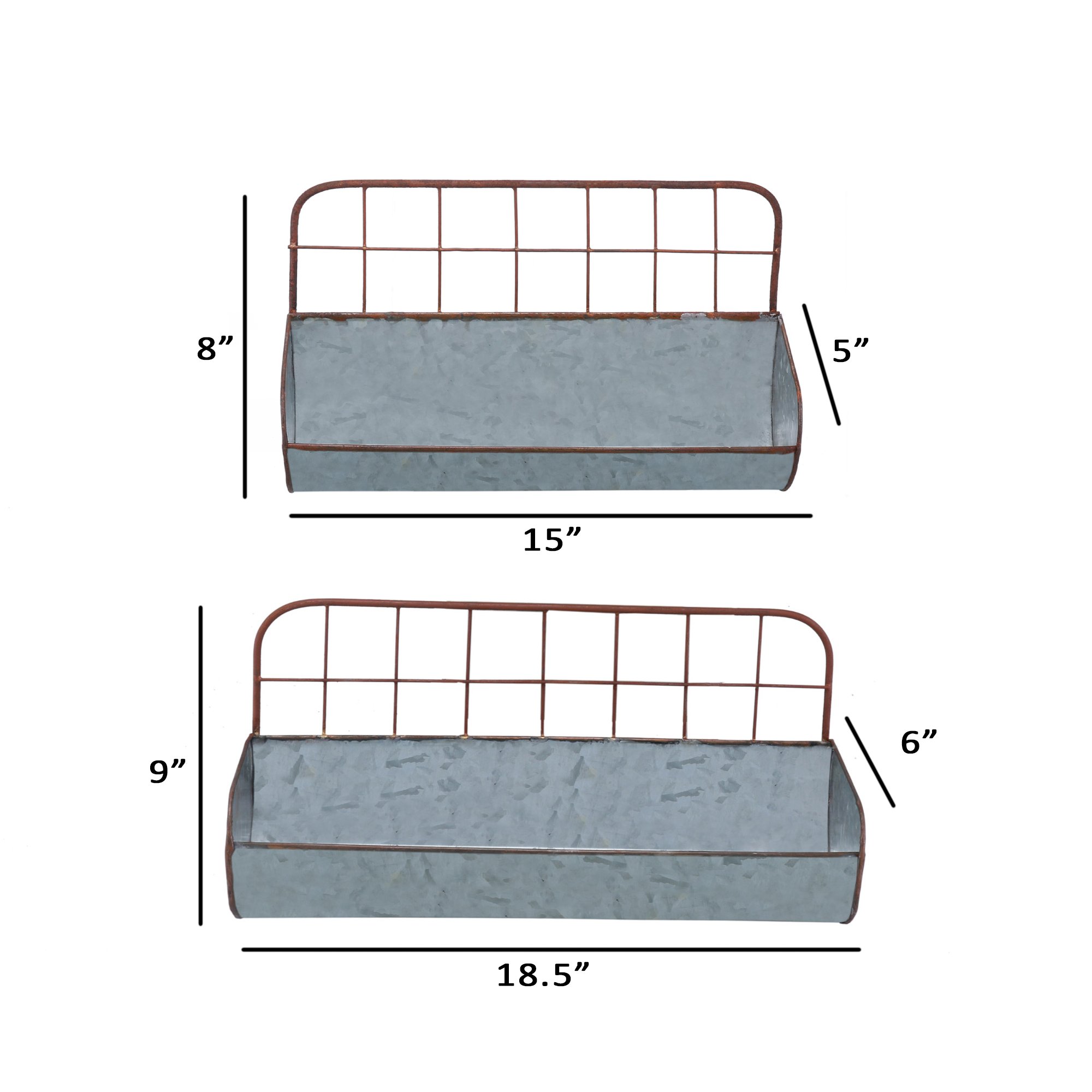 Home > Galvanized Metal Wall Iron Shelves With Wired Back, Set of 2, Gray