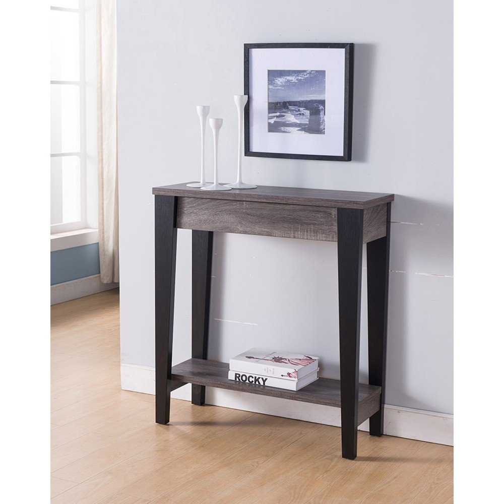 This black and gray Console table is simple and stylish table. The elegantly shaped legs look stylish from any perspective in modern or traditional spaces. Features large, smooth top surface with bottom shelf for open storage. A perfect accent to your living room, hallway or entryway.