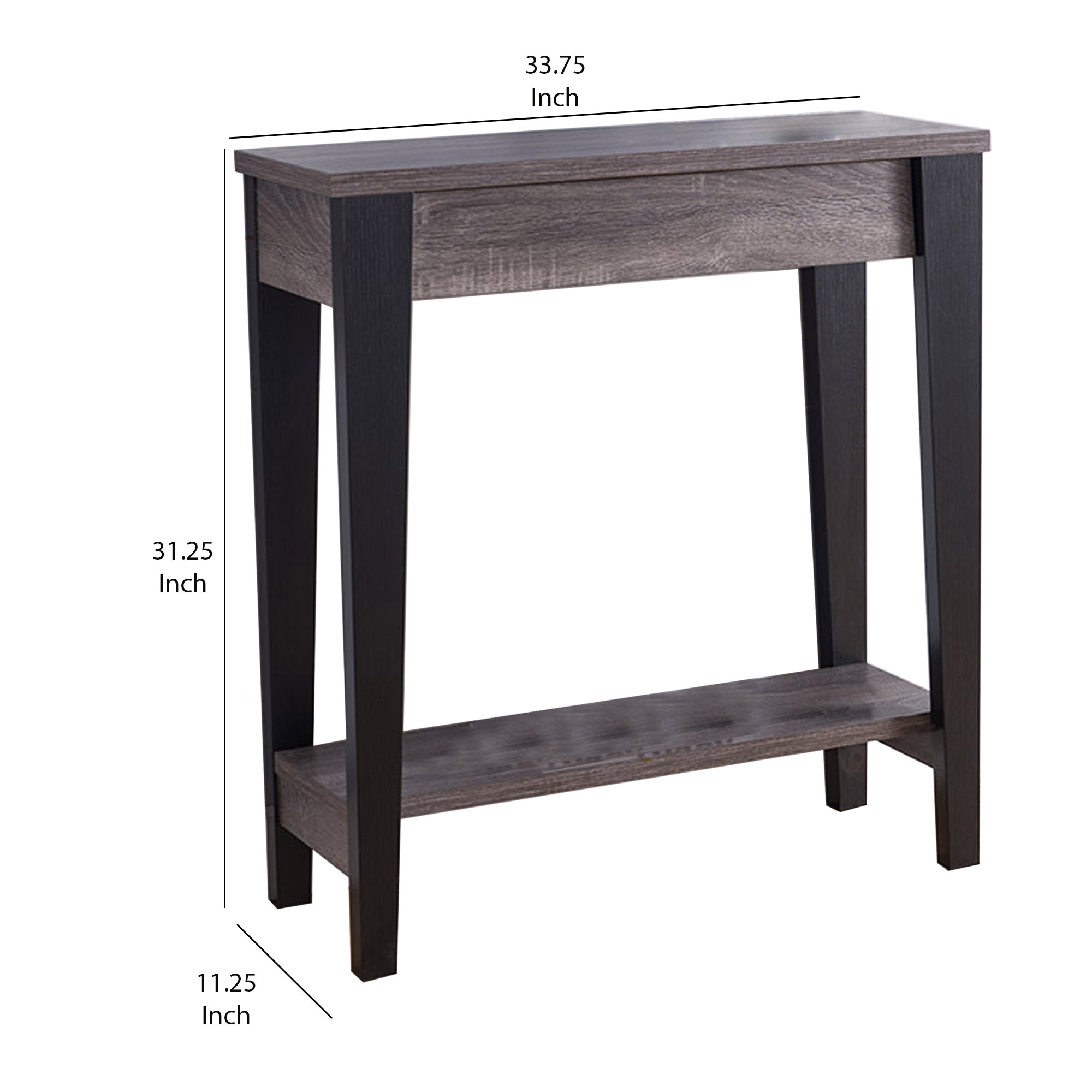 Wooden Console Table With Bottom Shelf, Black And Gray