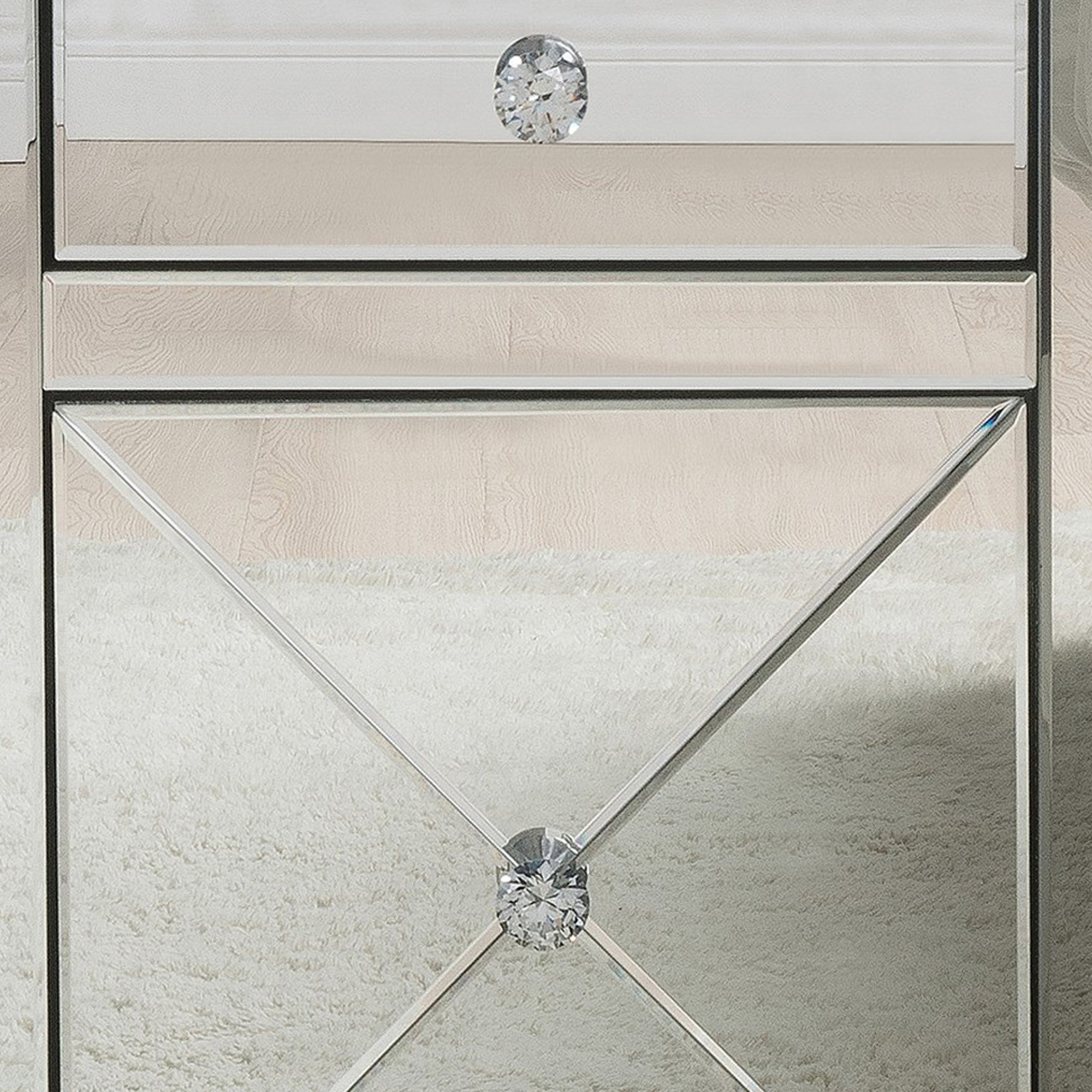 Wood & Mirror Nightstand with Crystal Inserts, Silver Wood & Mirror Nightstand with Crystal Inserts, Silver Wood & Mirror Nightstand with Crystal Inserts, Silver Wood & Mirror Nightstand with Crystal Inserts, Silver Wood & Mirror Nightstand with Crystal Inserts, Silver