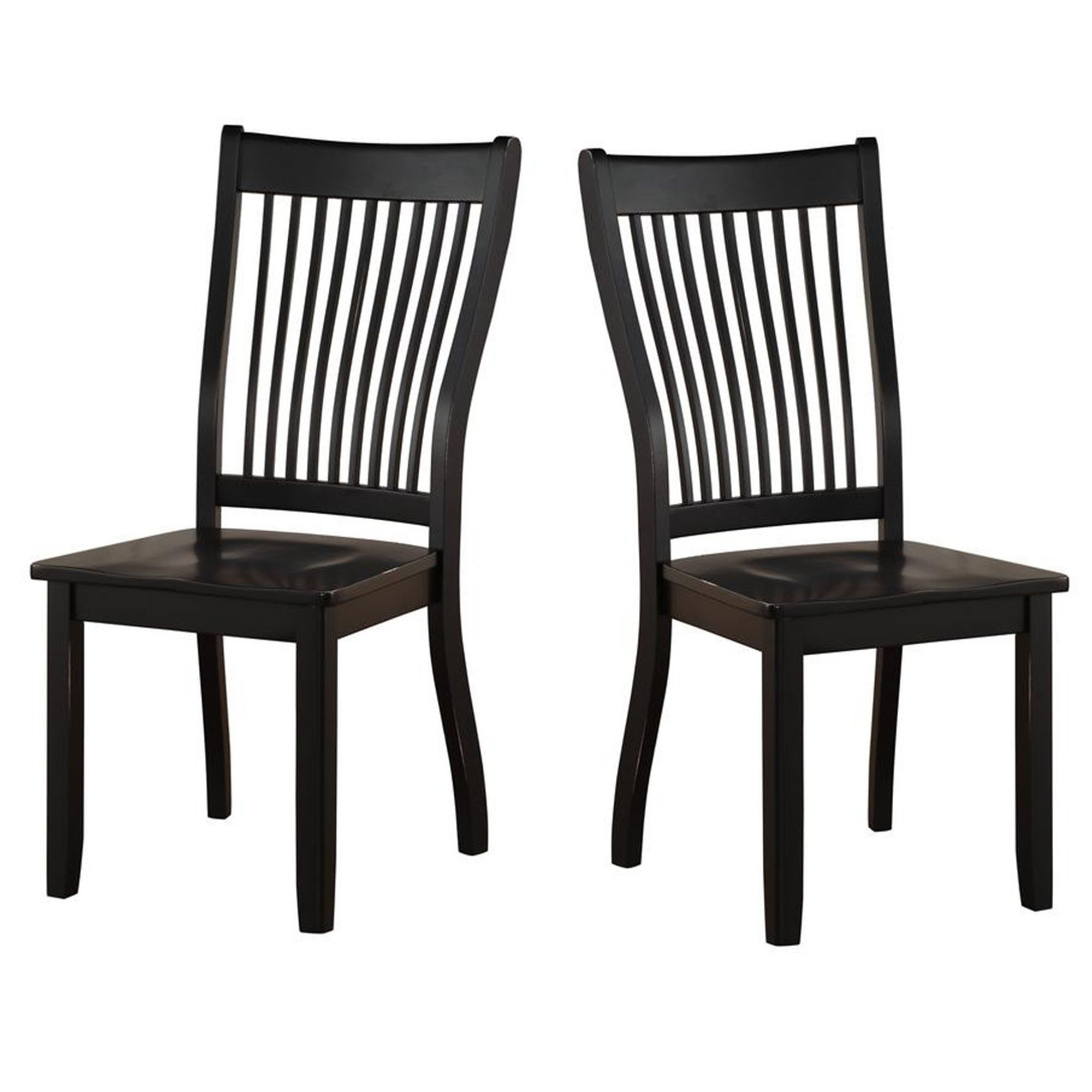 Home > Transitional Style Wooden Side Chair with Slatted Backrest, Set of 2, Black