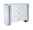 Perfect combination of function and fashion, this Cabinet will surely be the attraction of your living room or master bedroom. The cabinet is constructed from durable Composite Wood and is covered with beveled mirror panels that reflects surrounding light brilliantly. Its wide, rectangular top and three drawers offer plentiful space for books, remotes, and more, while its two square column legs with clear glass overlay and faux crystals inlay offer a dazzling display. Add this cabinet to your living room or bedroom and bring a contemporary flair to it. Note: Other featured items in this image except this Cabinet are sold separately.