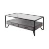 48 Inch Metal Coffee Table with Glass Top and 2 Drawers, Gray