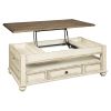 18 Inch Lift Top Two Tone Wooden Cocktail Table, White and Brown