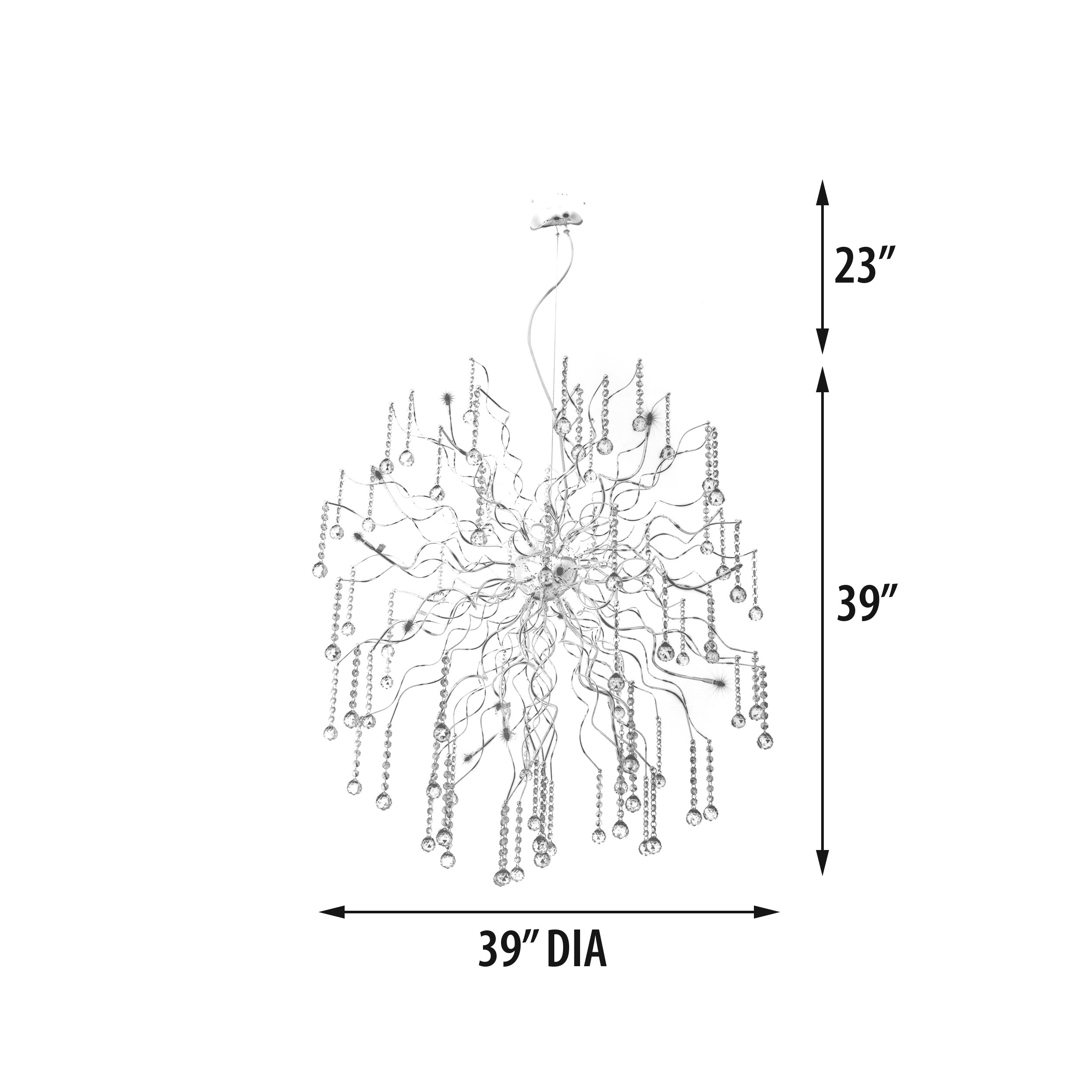 THE CRYSTAL AURA CHANDELIER IS A BEAUTIFULLY HAND CRAFTED LIGHT FIXTURE THAT CAPTURES THE ESSANCE OF THE DISTINCT ATMOSPHERE SURROUNDING ALL LIVING BEINGS. THE CRYSTAL CHANDELIER IS LIGHT AND AIRY WHILE PRODUCING AMAZING LIGHT WITH ITS 16 HALOGEN LIGHT BULBS. THE DELICATE CRYSTAL ACCENTS ADORNING EACH AURA WAVE TRULY ADD A STYLISH ACCENT THAT ONLY ENHANCES THE CHANDELIER. JUST TAKE A LOOK AT THE PICTURES AND LET US KNOW IF YOU HAVE ANY QUESTIONS. This chandelier use 15 -G4 10w bulbs -Bulbs not included Material: Steel/Crystal Crystal :Yes Lead Content:0.05 Crystal Origin:China Weight Lb:13.2 Bulbs:15 Watt :10 Switch:G4 Product Ul :Yes Wiring Ul :Yes Socket Ul :Yes Assembly :As Per Instruction