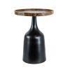 20, 17 Inch Side Table, Acacia Wood, Flared Pedestal Base, Aluminum, Black