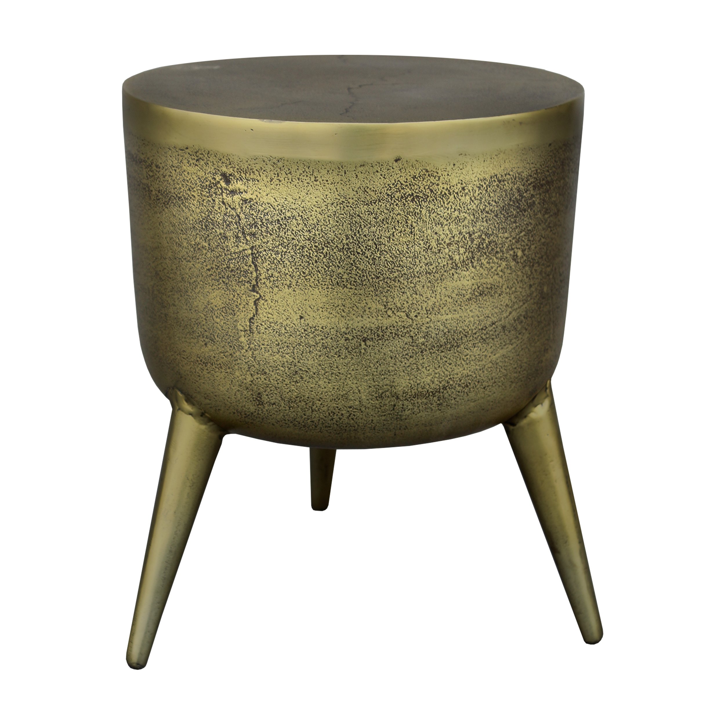 Expertly handcrafted in a classic vintage style, this metal round end table with is the perfect piece for any style of home decor. The crackled brass finish tabletop design emanates a classical and antique salvaged appeal, with a round silhouette and djembe drum shape structure, this accent piece is crafted from rust resistant aluminum cast for long lasting durability. Supported on three sturdy knock down tapered legs, this piece can be used to showcase vases, valuable collectibles, or sculptures. Likewise, it can be used as a gorgeous side table for placing your important and easy to reach items such as drinks, keys, or electronics. Whether this piece is in your living room, foyer, den, or bedroom, it never fails to impress with its charismatic and artistic style.