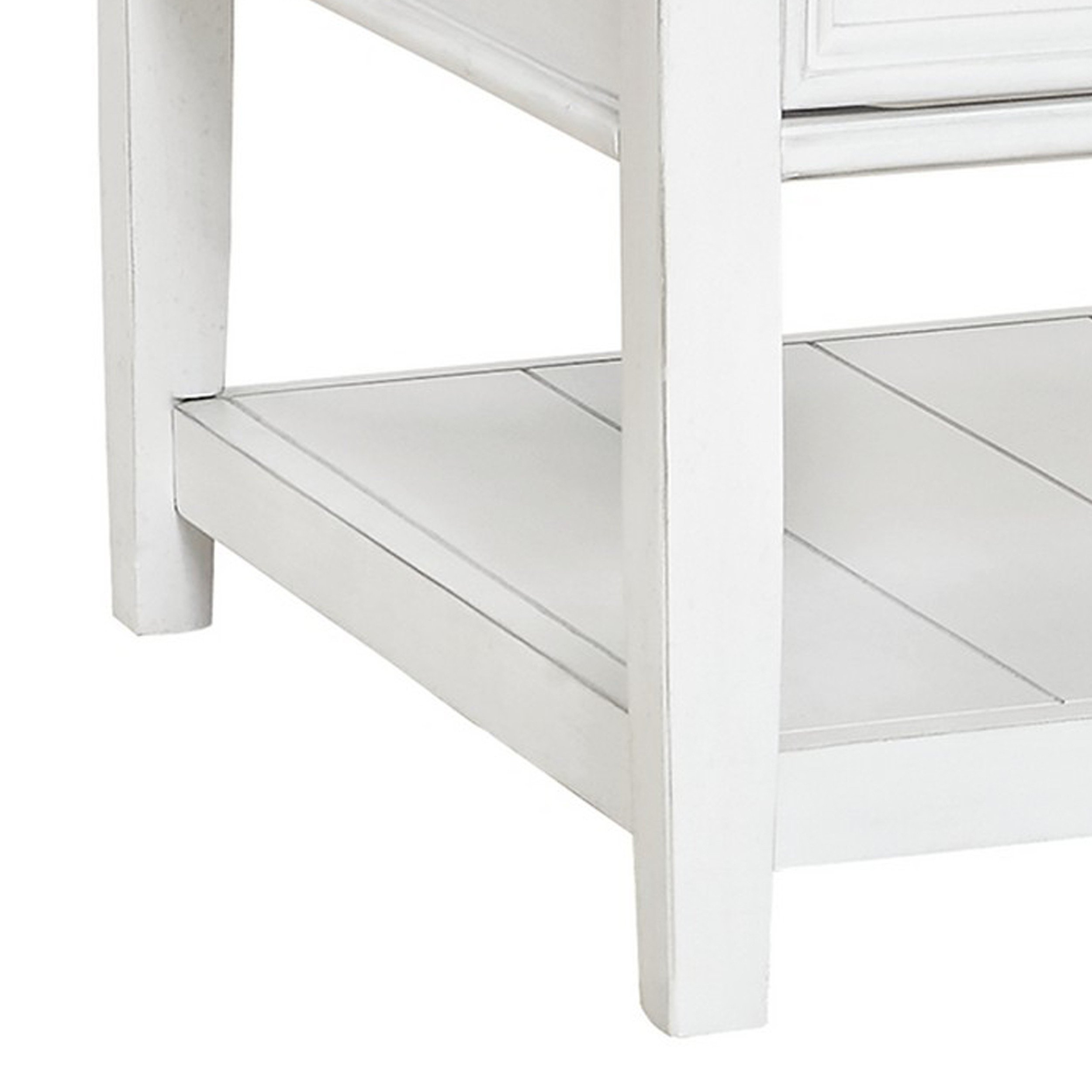 Minimalistically made and extraordinarily versatile, this rectangular coffee table is a perfect accent to imbue any modern interior with a distinct cottage aesthetic. Two large drawers glide smoothly open for convenient storage space above a handy bottom shelf, and sleek block legs offer both stability and support for a piece that is both reliable and simply radiant.