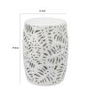 19 Inch Stool Table, Round Drum, Ceramic, Palm Leaf Design, Glossy White 19 Inch Stool Table, Round Drum, Ceramic, Palm Leaf Design, Glossy White 19 Inch Stool Table, Round Drum, Ceramic, Palm Leaf Design, Glossy White 19 Inch Stool Table, Round Drum, Ceramic, Palm Leaf Design, Glossy White 19 Inch Stool Table, Round Drum, Ceramic, Palm Leaf Design, Glossy White