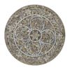 19 Inch Luxury Accent Table Stool, Star Foliage Pattern, Gray and Brown